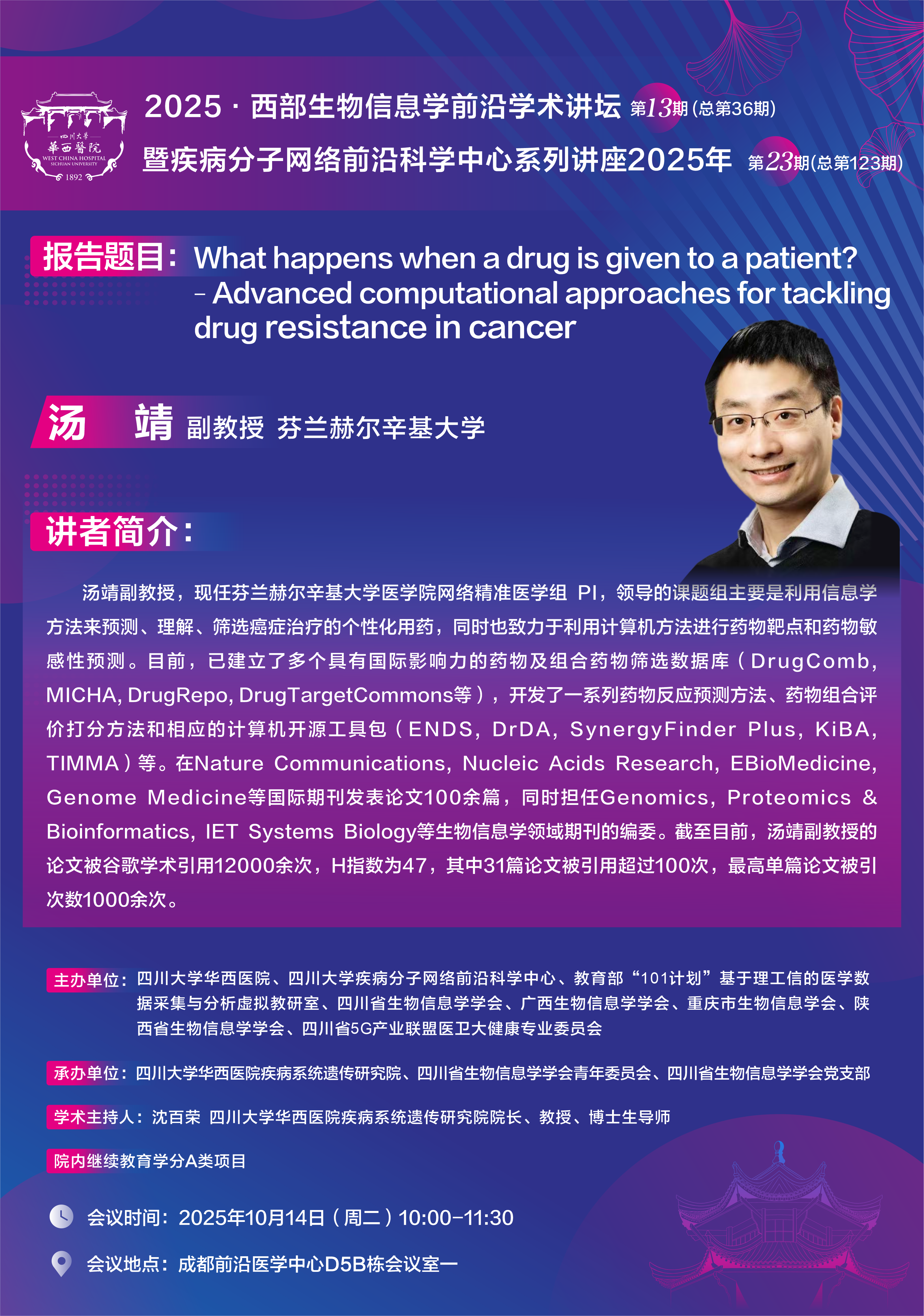疾病系统遗传研究院(Institutes for Systems Genetics)在四川大学华西医院的支持下成立,主要探索疾病发生、发展的分子遗传与关键分子网络问题。研究院建有疾病基因和基因组演化研究室、转化医学信息学研究室和疾病蛋白组与代谢组研究室三大研究平台。团队结合平台优势,通过以研究复杂疾病的系统遗传与分子网络标记物为导向,建立系统的理论、数据库、模型和软件工具,进一步探索疾病的分子机制和基因网络、人类疾病的分子遗传机制演化以及个性化的医疗与健康管理。研究方向主要包括研究生命与人类演化的重大分子遗传机制、人类重大疾病发生发展关键基因和基因组变异、人类疾病的分子遗传基础及其演化过程、卫生健康的遗传-环境相互作用群体与分子机制,涵盖了系统遗传学、分子诊断设计、表观遗传学和生物医学信息学等,正在开展“人类遗传分子网络图谱构建及临床应用”、“跨组学复杂疾病深度表型与网络标志物理论模型构建”等重大课题研究。